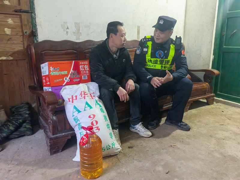 警民同心温情守护。民警携带米、面、油等生活物资,走进边境村屯困难群众家中开展走访慰问。在群众家中,民警与老人、困难群众促膝长谈,细致询问冬季取暖、衣食住行等生活情况,仔细排查用电用火设施隐患。“冬季取暖一定要保持通风,用电设备人走断电,遇到任何困难都可以第一时间联系我们!”民警一边排查,一边反复叮嘱安全注意事项,用朴实的话语、务实的行动温暖着群众的心。