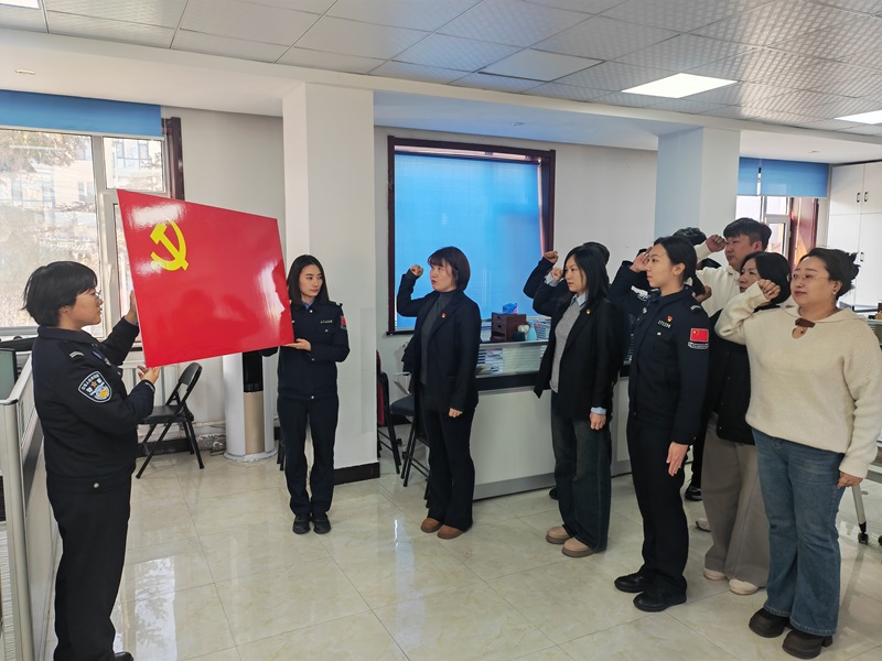 活动现场,全体党员面向党旗庄严宣誓,重温入党誓词,铿锵有力的誓言进一步坚定了在场党员不忘初心、牢记使命的信念。非党员代表共同观摩见证,深切感受党员群体的责任与担当。随后,大家共同学习党的创新理论要点,围绕基层治理与便民服务深度融合展开研讨。派出所民警结合边境管控、矛盾调解、便民办证等工作实际,分享立足岗位服务群众的经验做法;社区工作者与居民代表则聚焦网格管理、老旧小区改造、特殊群体帮扶等民生事项,踊跃交流意见建议,现场氛围热烈融洽。