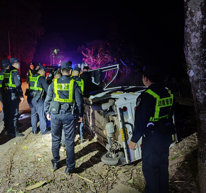 边境夜巡遇险情,民警及时救助翻车群众