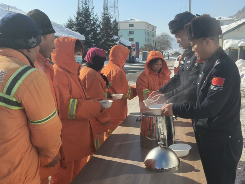 1月23日,在腊八节来临之际,吉林白山边境管理支队六道沟边境派出所组织民警开展“情暖腊八·致敬劳动者”慰问活动,让凛冽冬日里涌动警民同心的温情暖流。