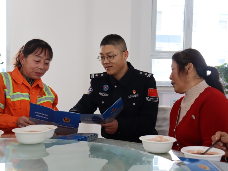 活动当天,民警们将环卫工人邀请到派出所,将亲手熬制的腊八粥送到环卫工人手中。“师傅们,快喝一碗热乎的腊八粥暖暖吧,你们辛苦了!”民警们与环卫工人围在桌前促膝长谈,关心着他们的身体状况和生活需求,叮嘱他们冬季户外作业时注意保暖防寒,做好自身安全防护。民警还结合边境辖区治安特点与冬季安全防护要点,通过发放宣传手册、现场讲解等方式,向环卫工人普及最新的边境政策法规,提醒他们在边境村屯作业时注意事项。“我们每天在街头工作,接触的人多,民警讲的这些安全知识太实用了,以后会多注意,也会跟身边人分享!”环卫工人李大姐说道。
