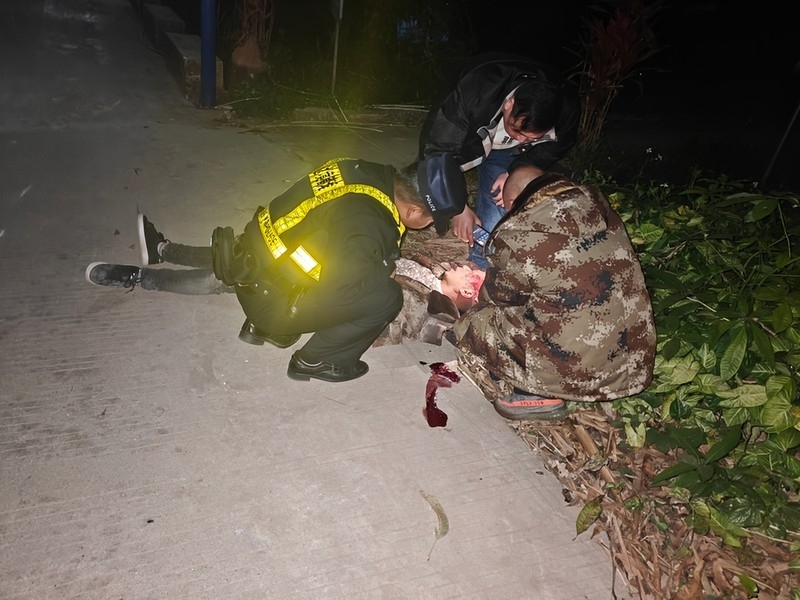当晚,该所民警巡逻至某路段时,发现一名男子连同摩托车倒卧在路旁。民警立即上前查看,发现该男子头部受伤出血,躺在地上无法动弹,意识模糊。民警迅速采取救援措施,一边安抚伤者情绪,一边对其伤口进行简易止血,同时第一时间联系120急救中心。