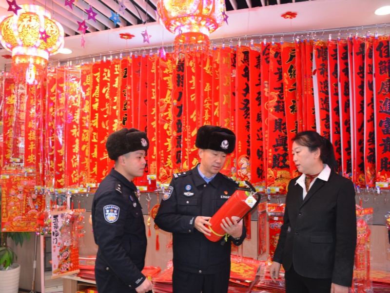 烫金的“福”字、火红的对联、摇曳生姿的红灯笼……2月5日,距离春节不到半个月的时间,吉林省临江市兴隆街道处处洋溢着喜庆气氛,往来市民一边挑选着年货,一边聊着对农历新年的憧憬与期盼,吉林白山边境管理支队兴隆边境派出所的民警穿梭在扑面而来的“年味”里。