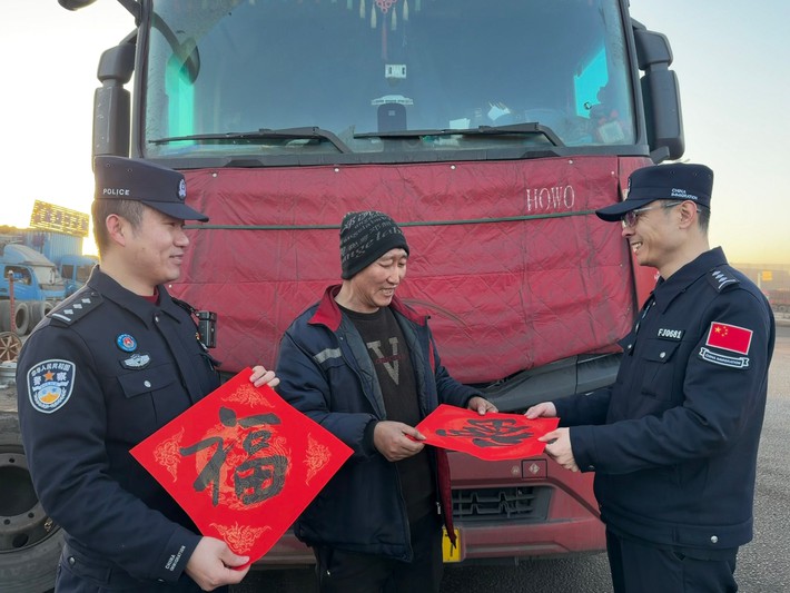 夕阳西下,北疆国门的余晖缓缓洒落,鲜红的福字映着藏蓝的警服,勾勒出一幅平安祥和的新春画卷。从甘其毛都边境派出所值守一线,到八千里边防线每一处卡点,北疆移民管理警察始终以赤诚铸魂、以实干践责,将初心融入每一次巡边、每一次服务,守护万家灯火,书写出新时代守护边疆安宁、护航群众幸福的忠诚答卷。