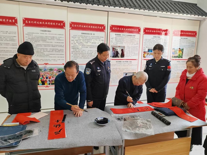 活动现场热闹非凡,写对联、包饺子两大特色环节轮番开展,民警与社区居民围坐一堂、其乐融融。红纸铺展,笔墨飘香,民警与书法爱好者同台挥毫,将平安祝福凝于笔端,一副副寓意吉祥的春联、一个个饱含美好期许的福字,为新春增添了浓浓墨香;案板声声,情谊暖暖,大家分工协作、揉面擀皮、包捏馅料,一个个饱满的饺子在手中成型,热气腾腾的水汽里,满是警民同心的温馨滋味。