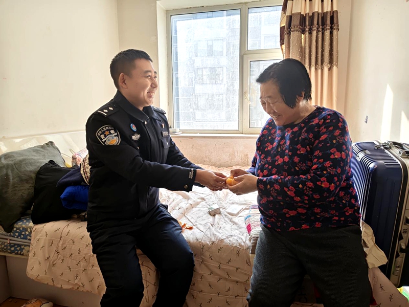 与此同时,民警李博正行走在前往独居老人周女士家的路上。周女士常年独自照顾患病儿子,生活重担全压在她一人肩上。“周阿姨,我们来看您了!”推开门,李博的问候让冷清的小屋顿时热闹起来,他仔细查看家中的生活物资储备,询问老人冬季取暖情况和儿子的病情,认真记录下老人面临的实际困难。“孩子的药还够吗?生活上有没有需要我们帮忙的地方?”李博一边为老人整理杂物,一边耐心叮嘱道,“有任何困难都可以给我们打电话,我们一定尽力帮忙解决。”周女士握着李博的手,哽咽着说:“你们就像我的亲人一样,总在我最难的时候出现,真是太感谢了。”