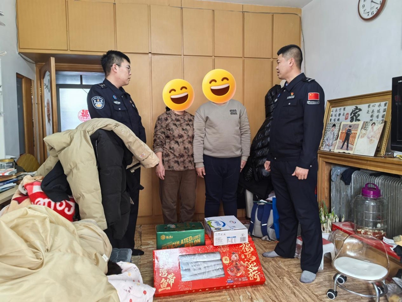 带着满满的关怀,韩朋成又来到辖区困难群众贾大爷家中。一进门他便将装满牛奶、水果的购物袋和红彤彤的福字递到贾大爷手中。“贾大爷,快过年了,给您送点年货,提前祝您新春快乐!”贾大爷家庭收入微薄,生活十分拮据。韩朋成与贾大爷促膝长谈,详细询问其生活近况和实际需求,鼓励他保持乐观心态,有困难及时向派出所反映。看着手里崭新的福字,贾大爷感慨道:“每年春节前民警都来看我,送来的不仅是东西,更是实实在在的温暖”
