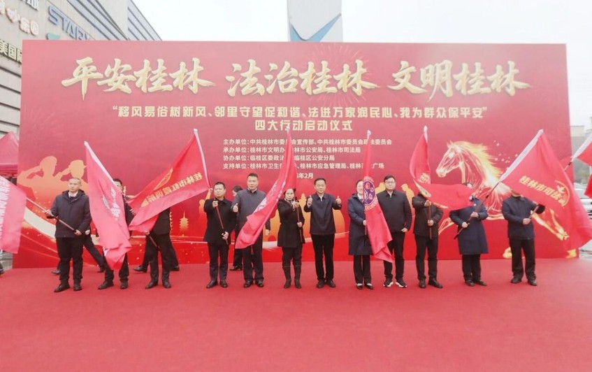 初春桂北,乍暖还寒。2月10日,由广西桂林市委宣传部、市委政法委主办的“平安桂林 法治桂林 文明桂林”新春系列行动启动仪式隆重举行。