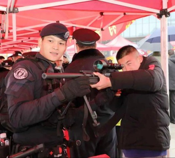 “我为群众保平安”展区令人震撼,特巡警装备展示、警犬互动体验让市民近距离感受公安力量。市民陈女士触摸警犬后由衷敬佩:“感谢无言战士与守护者,默默守护城市平安。”