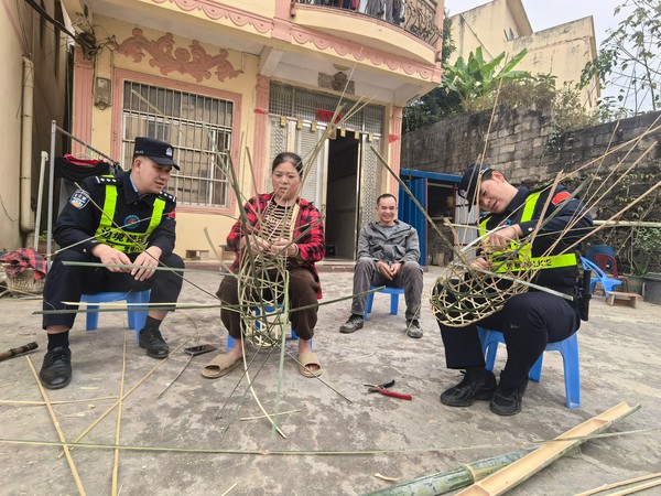 指尖的竹篾编织着民俗传承,也串联起警民同心。民警守护边境安宁,村民传承手艺根脉,“你教我学”间,边境村屯的文化底色与平安图景愈发鲜活。当警务工作扎根民俗土壤,当警民情浸润年俗肌理,这份“接地气”的创新,既为八桂新春添了暖意,更以“民俗为桥、真心换民心”的实践,为新时代“枫桥经验”写下生动注脚:最暖的平安,永远织在民心深处。