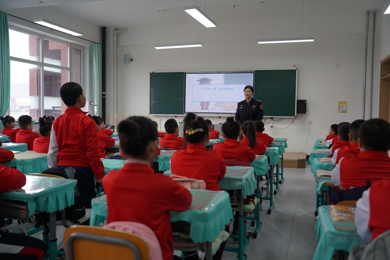 3月1日新学期开学首日,白山边境管理支队新市边境派出所民警走进辖区光华中学,为广大师生送上一堂形式新颖、内容丰富的开学“第一课”,将法治春风送进校园,用“警”色照亮平安成长路。
