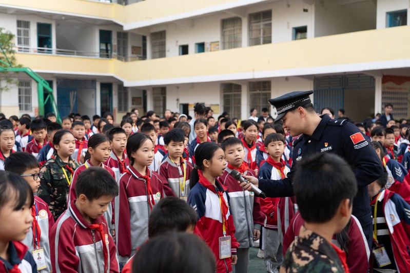新学期伊始,为进一步增强边境辖区青少年的法治观念和自我保护意识,有效预防校园欺凌事件,筑牢校园安全防线,3月2日,广西崇左边境管理支队爱店边境派出所民警走进辖区爱店中心小学,开展以“拒绝校园霸凌,法治守护青春”为主题的“开学第一课”法治宣讲活动,为全体师生送上了一份干货满满的“法治大礼包”。