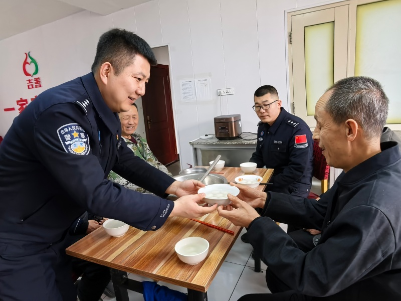 活动现场处处洋溢着温馨与欢乐。民警带着精心准备的汤圆、水果、牛奶等慰问品,与老人们围坐在一起,细心询问老人们的身体健康状况、日常饮食起居以及生活中遇到的困难,耐心倾听老人的心声与诉求,叮嘱老人们注意添衣保暖、保重身体。大家亲手为老人们煮制汤圆,将一碗碗热气腾腾、香甜软糯的汤圆送到老人手中,香甜的滋味温暖了每一位老人的心田。