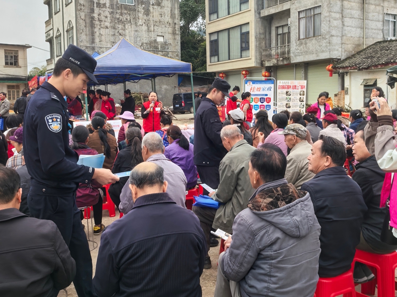 技能培训与法治宣传同步发力、同向而行。派出所民辅警与乡政府工作人员、普法志愿者联合设立宣传咨询台,通过悬挂横幅、发放宣传资料、现场答疑、以案释法等形式,开展全方位普法宣讲。民警结合边境地区治安特点,重点讲解《民法典》婚姻家庭编、妇女权益保障、反家庭暴力等内容,用身边案例解读法律条文,引导妇女群众尊法学法守法用法,依法维护自身权益;针对电信网络诈骗、跨境赌博、新型毒品伪装等突出风险,细致拆解刷单返利、冒充客服、虚假投资等诈骗套路,展示毒品仿真模型,普及禁毒知识,叮嘱大家守好“钱袋子”、远离毒品危害;同时宣讲边境管理法规,倡导自觉抵制“偷引带”等涉边违法犯罪,守护边境平安稳定。