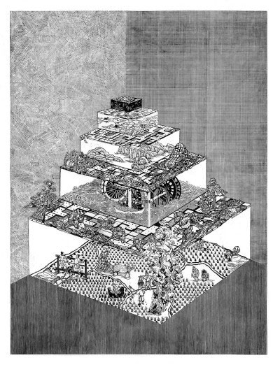 进入新时代,越来越多的版画家从农耕文明的土壤中汲取养分,积极探索农业题材版画创作的新方向。农业现代化图景的表现、版画新图式与新材料的探索等课题,为构筑当下农业题材版画创作的新面貌提供了动力。陈琦在创作《二十四节气》系列作品时,力图将时令、气候、物候等变化规律与人类生命的内在气息相呼应,以此揭示人与自然之间的相互联系;笔者的《重读授时图》将现代与古代、人造与自然、工业时空与自然节律进行并置,从而引发观者对中国传统农业哲学所蕴含的“文化生态模式”和全球范围的环境与生态危机问题进行思考。